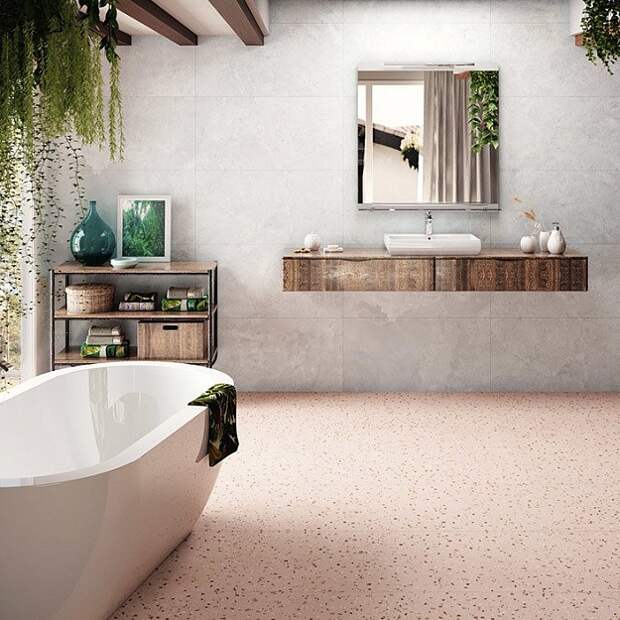 - Крупный формат: позволяет создавать поверхности, где минимальное количество швов. Такое помещение выглядит просторным.